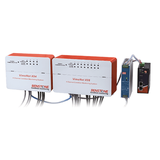 前端採用最新型的訊號擷取模組 VimoNet 系列,其內建 DSP 晶片與 relay 輸出功能,且具有即時運算能力。藉由選購的網頁伺服器,更可在各種平台的手機、平板電腦或 PC 上瀏覽資料;也可以透過 OPC 或 Modbus 伺服器,將資料分享給企業的資料庫或 DCS 系統使用。