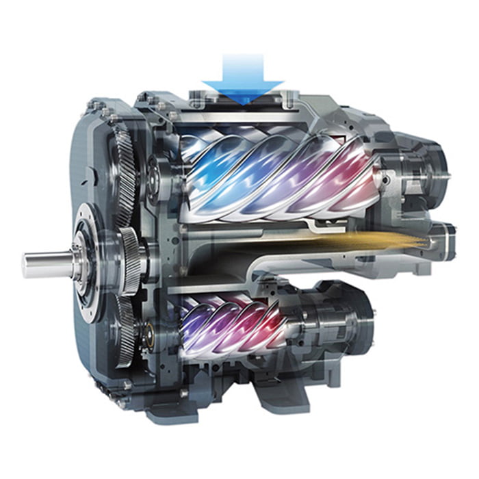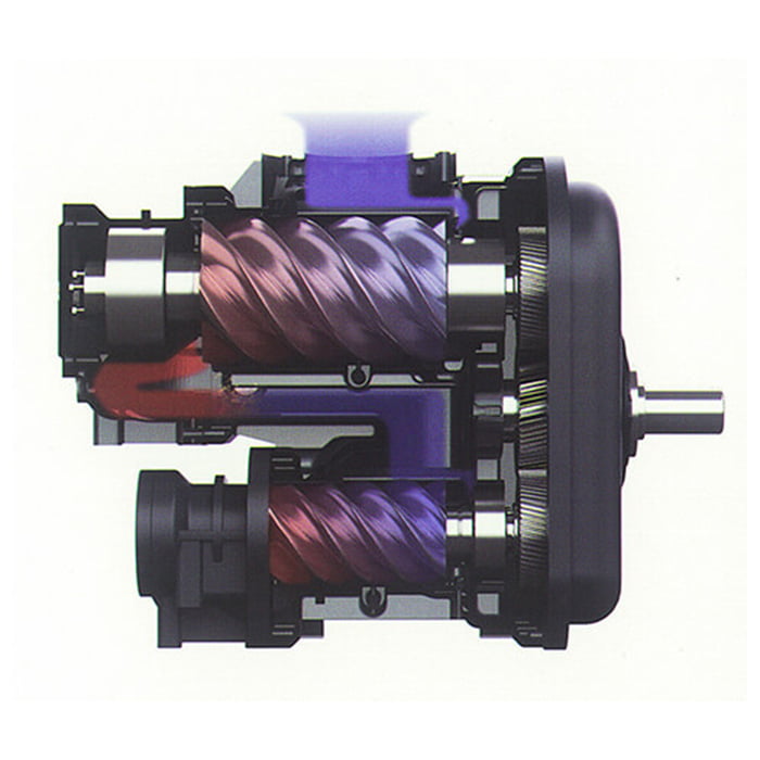 單段和雙段主機均引入了部分軸向進氣設計,充分利用了螺杆的有效長度,使壓縮效率最佳化;減少徑向不平衡力提高部件壽命;也顯著降低了運行噪音。